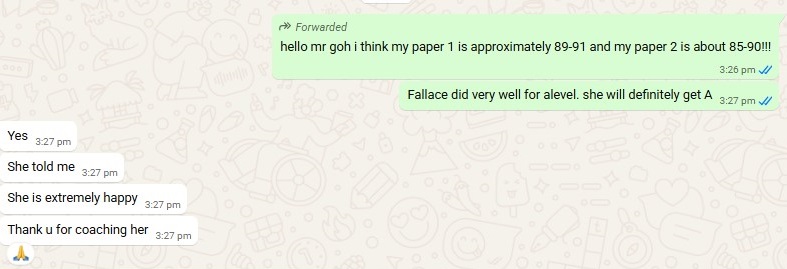 A DHS student who joined my group tuition in May 2025 improved from 52% (D grade) in the promo exam to over 87% in the A-Level. She computed her score against tutor’s solution, which has been a reliable indicator — over the years, every student who scored above 80 this way went on to get an A in the A-Level exam.