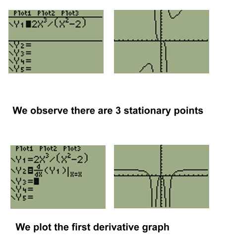Left stationary point: First derivative changes from +ve to -ve. Therefore, it is a maximum point