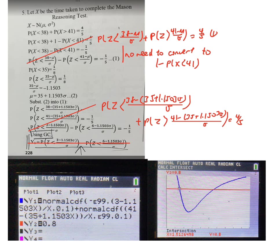 Since the question did not ask for exact values of p, we can use the GC to solve this question.