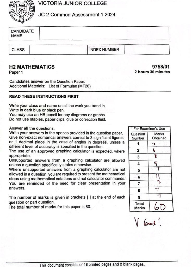 Instead of doing past VJC prelim to prepare for VJC prelim, we did the harder HCI, RI and NY prelim. She got A for VJC 2024 prelim (80-100 percentile)
