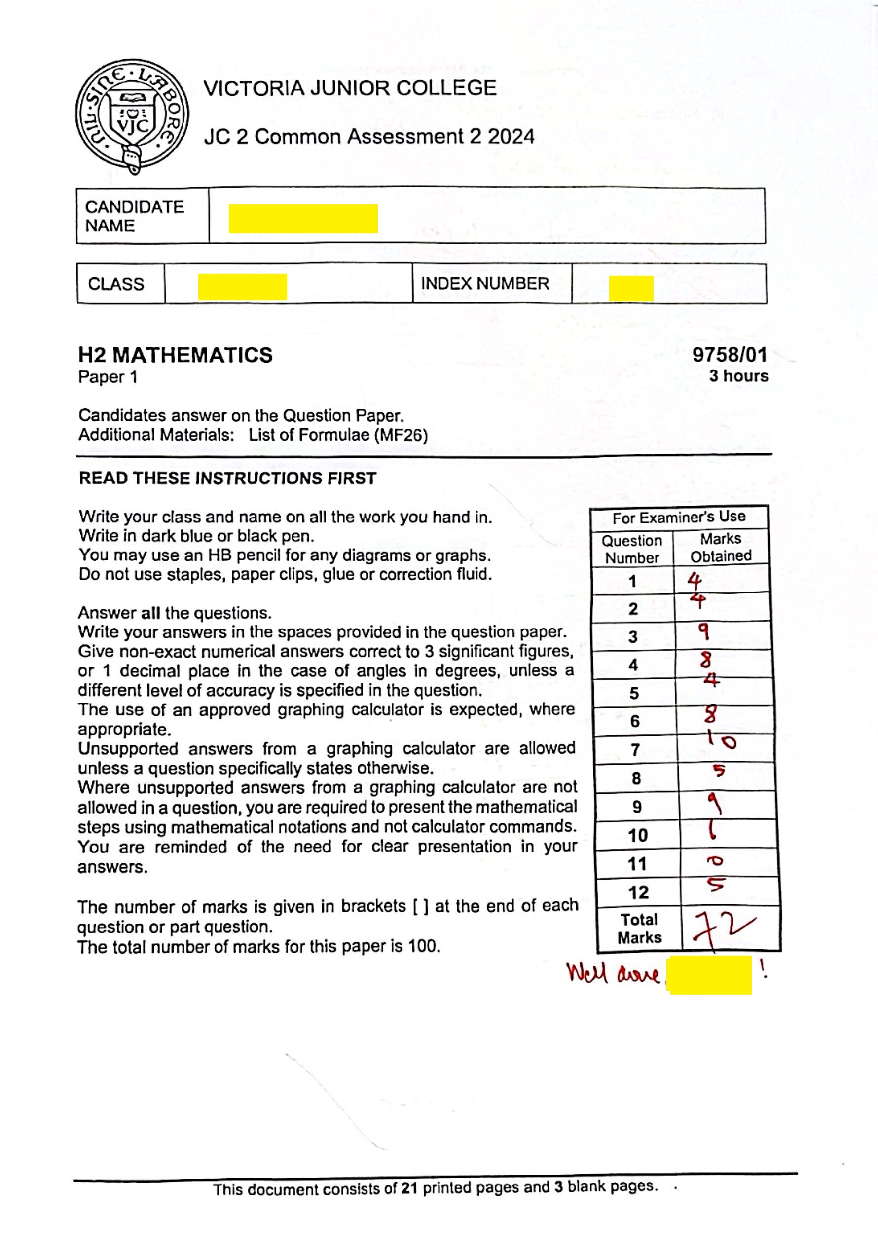 Instead of doing past VJC prelim to prepare for VJC prelim, we did the harder HCI, RI and NY prelim. She got A for VJC 2024 prelim (80-100 percentile)